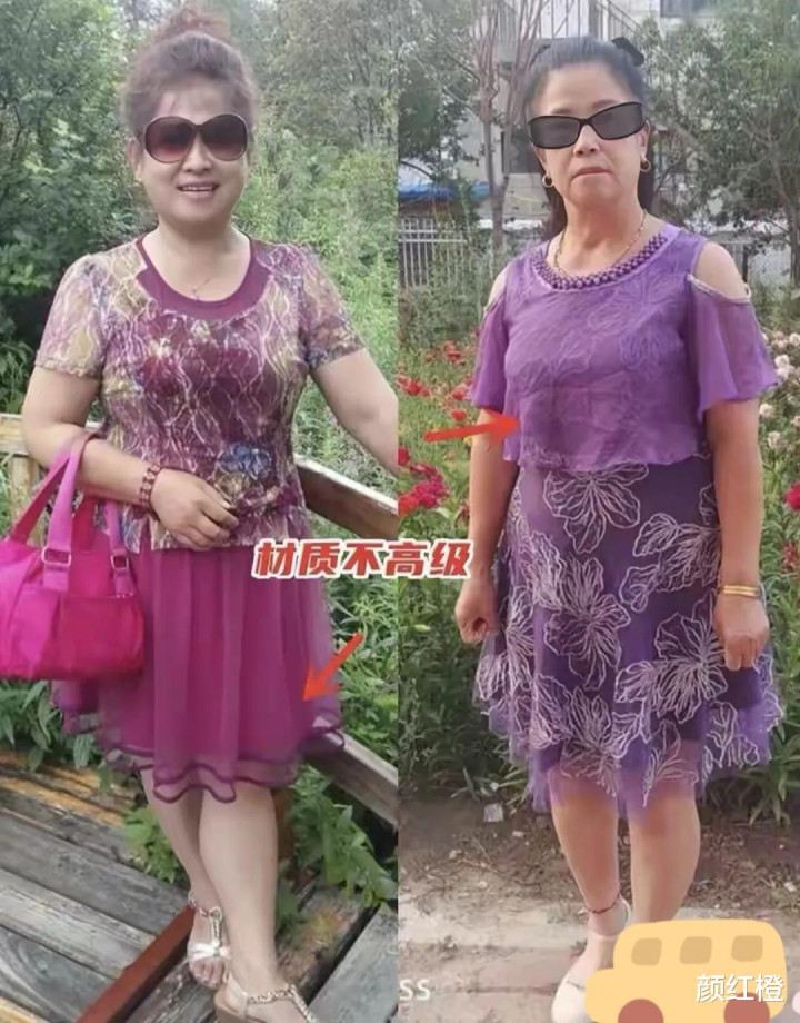 有的衣服材质不好,确实怎么穿都无法提升整个人的气质和品味,例如下面这两条紫色的裙装,选择的是薄纱的面料,这种面料穿在身上并没有高级感,可能你选它的时候想要穿出仙气飘飘的即视感,但放在现实生活中,事与愿违。