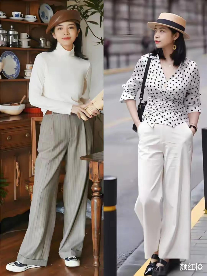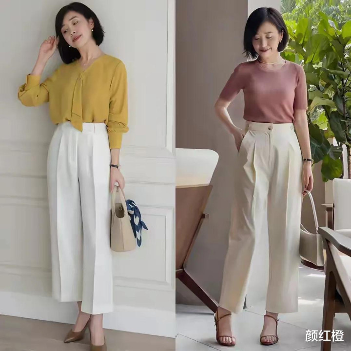接下来我们来看一看裤子的穿搭技巧,例如下面用一件修身款的红色背心搭配上白色的阔腿裤,脚上穿了一双皮鞋,这样的穿搭属于松紧结合,能把你凹凸有致的身材展现出来,变得更加迷人。