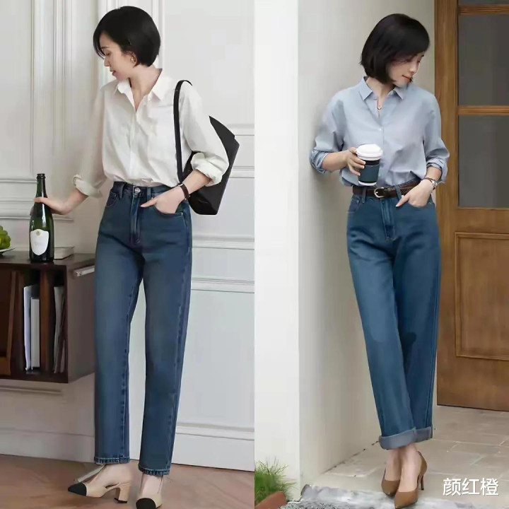 或者我们还可以选择粗跟的浅口单鞋搭配上牛仔裤和白色的衬衫上衣,这样的穿搭比较干练,穿起上班、逛街、约会都完全没有问题,通勤又时髦。